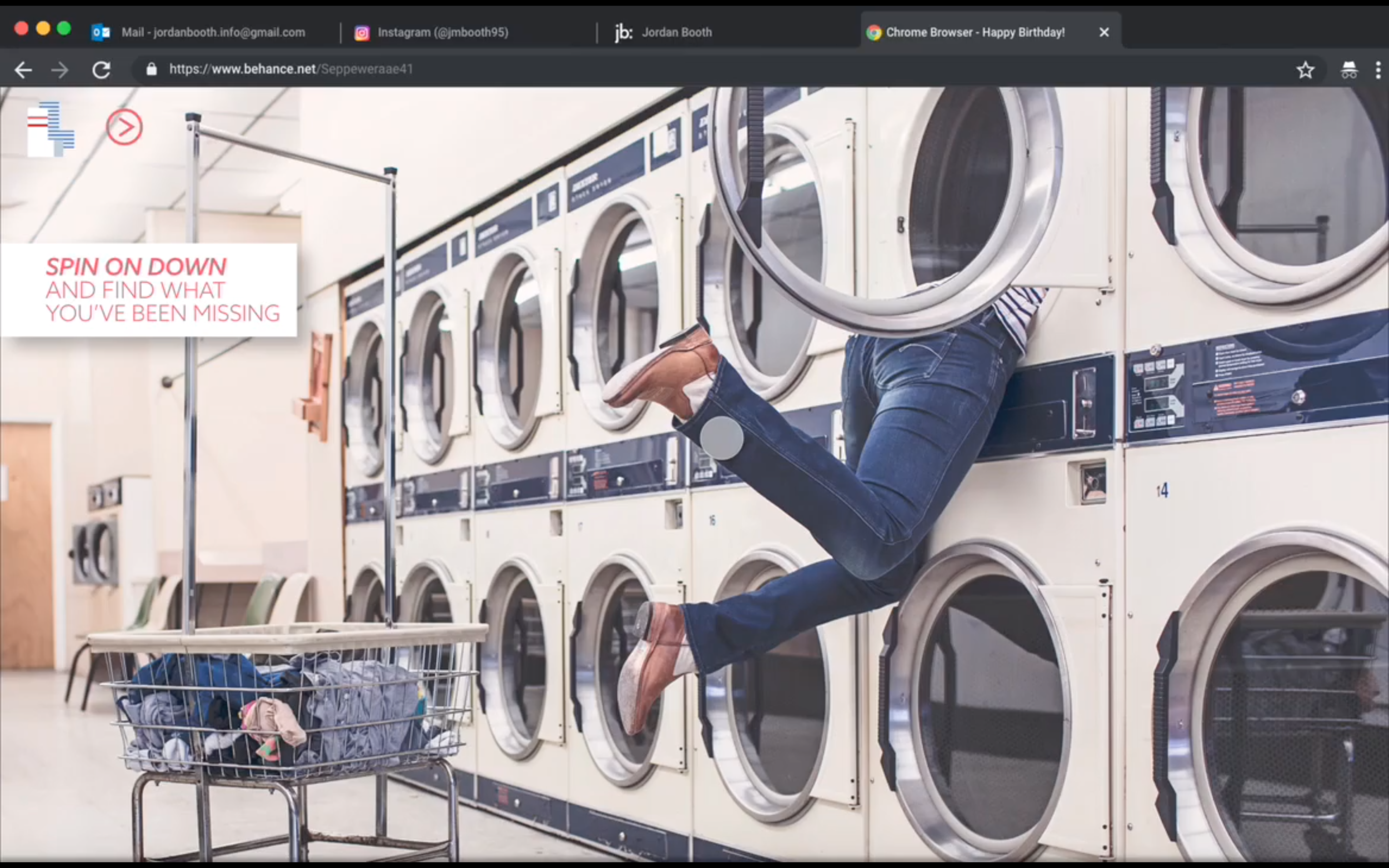 The store is unique in that it has 2 separate doors into the shop. I used that in the storytelling on the store, having the facade be a washer and dryer setup complete with dials and a lint trap. In the floor plan, I laid it out that as if it was a journey, where you meet your traveling companion, stock up on supplies, travel up the mountains of socks, and end it finding what you’ve been missing.